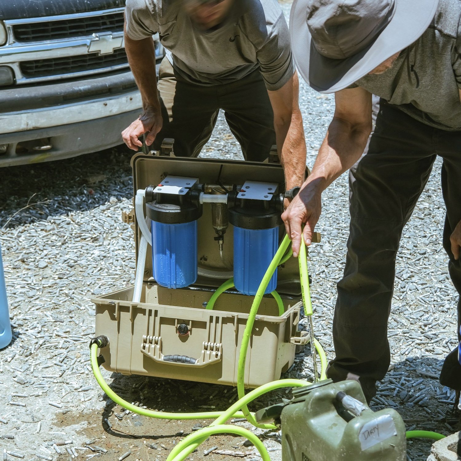 We had 5 gallons of clean drinking water and needed nearly twenty. Of the seven filters we had among our group, all but one had failed. As the sun set, the urgency of moving on foot to a contested water source a quarter mile away began to set in. How were we going to get there? How much water could we gather? How much water could we carry on foot over uneven ground?