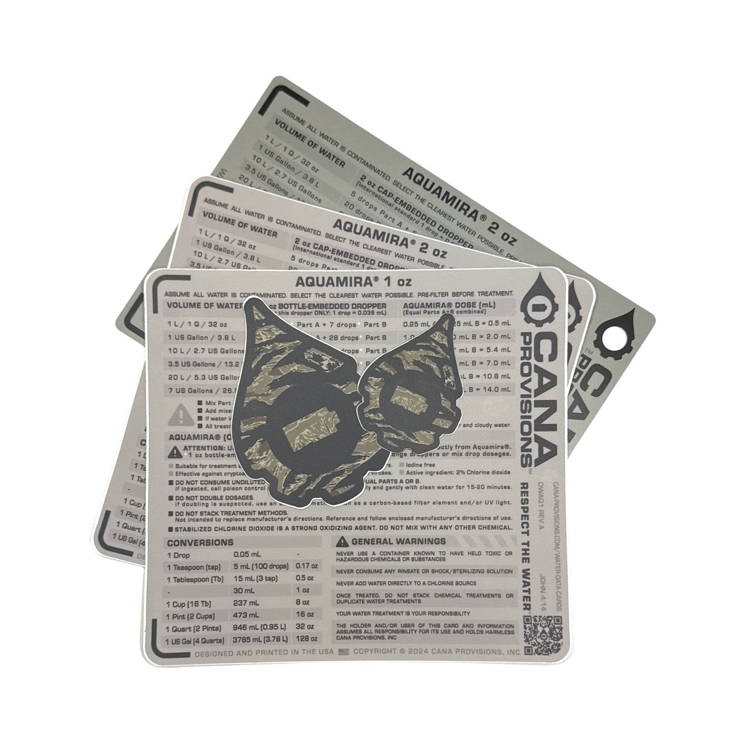 AquaMira Water Data Card, Aquamira 2oz Decal, Aquamira 1oz Decal