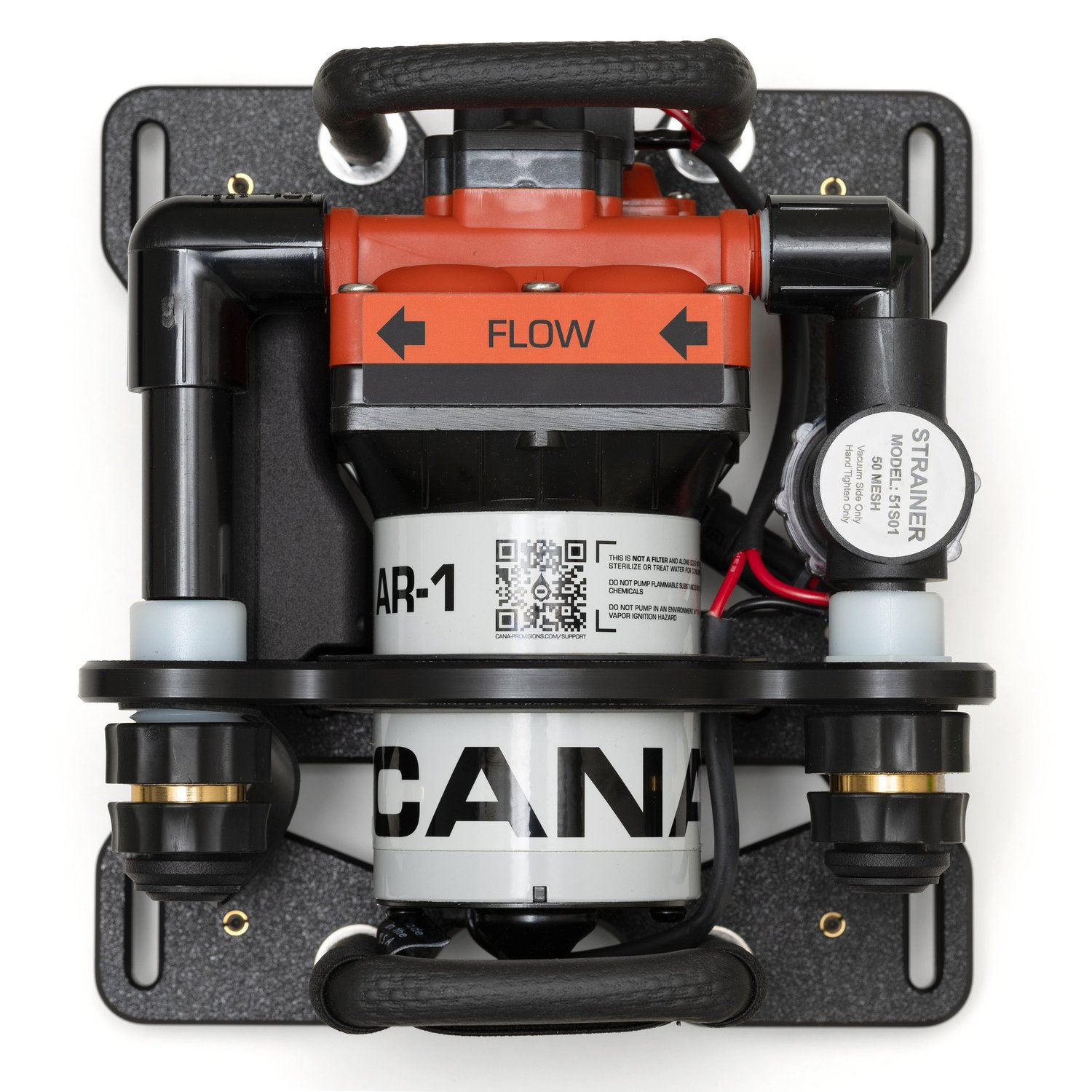 The AR-1 was designed as the first and most crucial component of the modular CANA ECOSYSTEM. While designed to pressurize and drive the ecosystem, the AR-1 was designed to first and foremost STAND ALONE. Whether you’re moving on foot, on two wheels, four wheels, setting up camp or in your backyard the AR-1 is expressly designed to meet your water transfer needs. From source to container, container to container, pressurizing a pre-plumbed system or feeding a filter - MOVING WATER is what the AR-1 does. No more hand pumping, no more siphoning, no more dunking containers in the pond. Its application is limited only by your imagination.