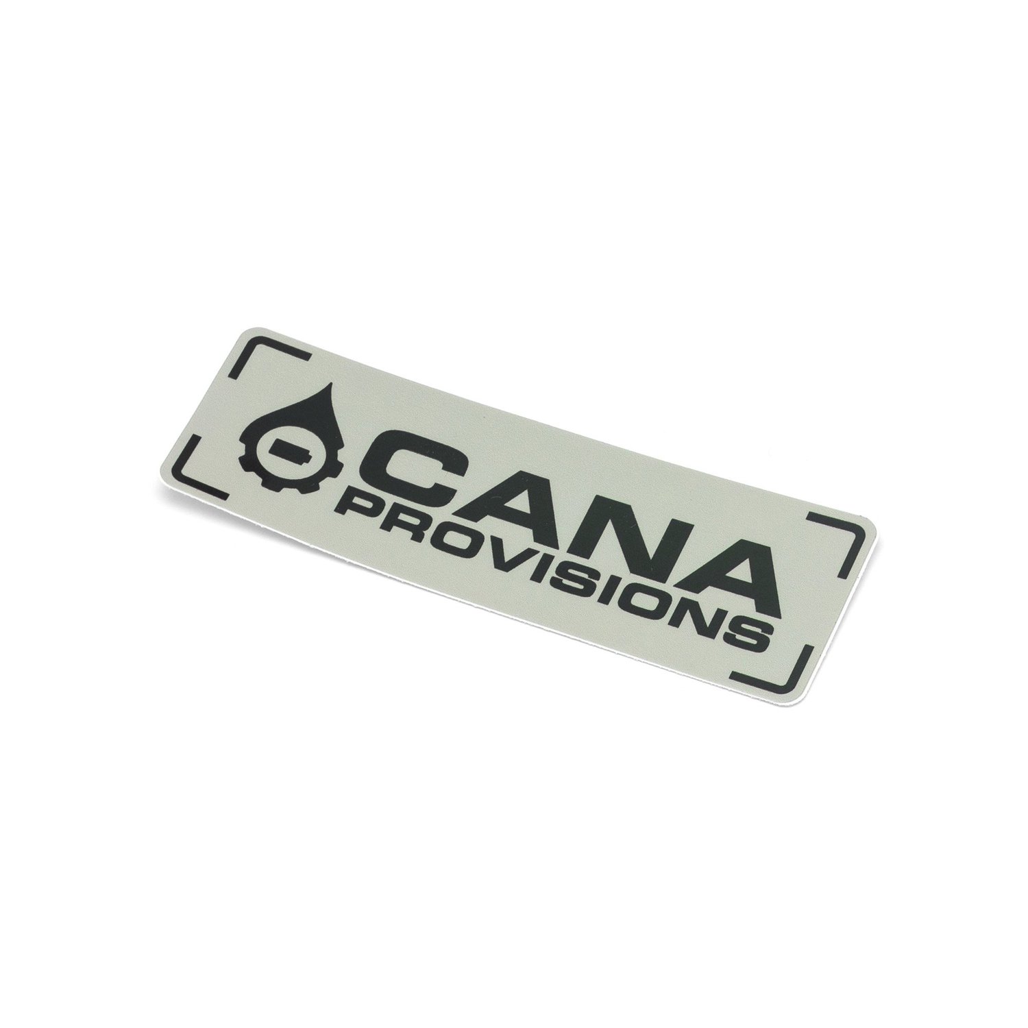 Cana Provisions branding in the same high-quality material and process as the water data card decals. 4” (L) x 1.375” (H)