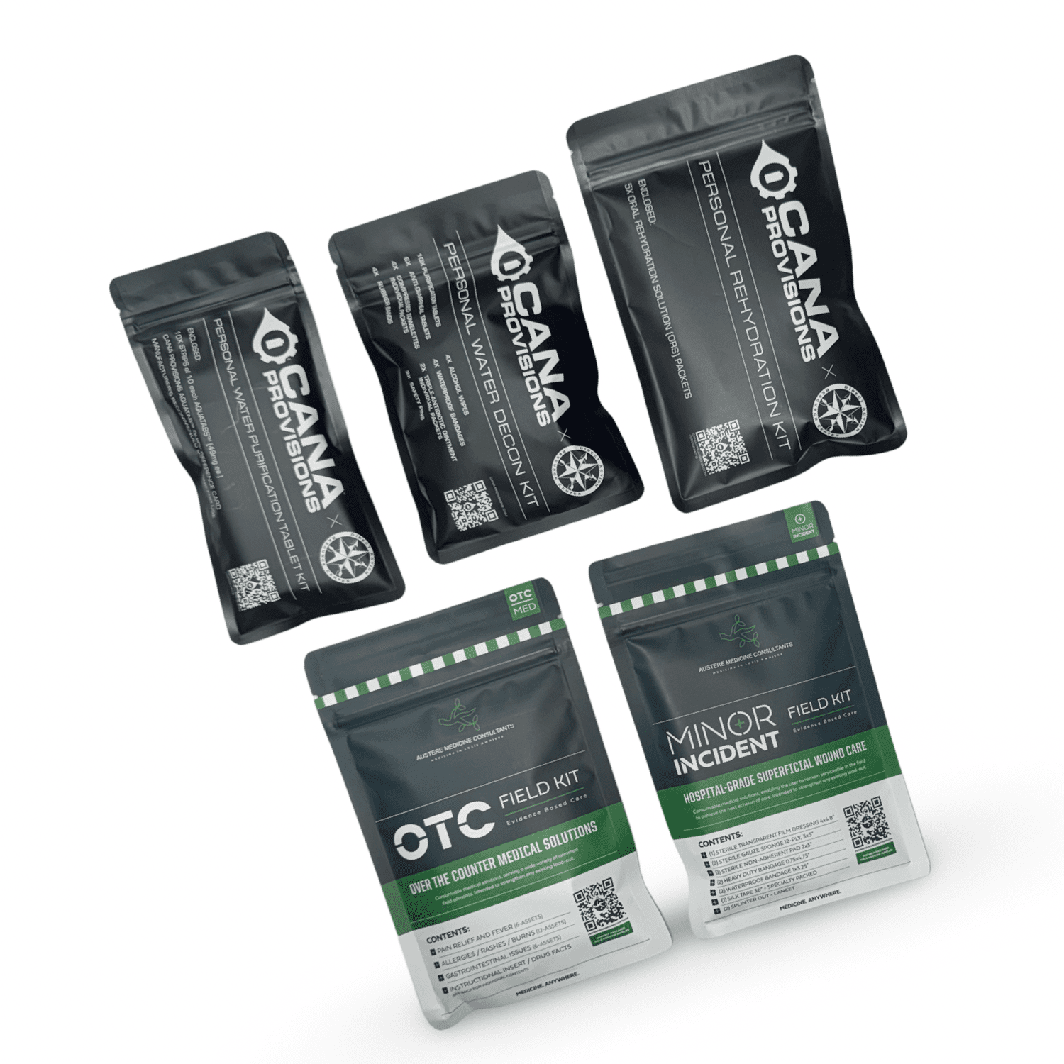 What’s better than the two new Austere Medicine Consultants Field Kits? Combining both of the new field kits with the Decon combo kit for a total of FIVE individually packaged kits to keep you going in the field.
