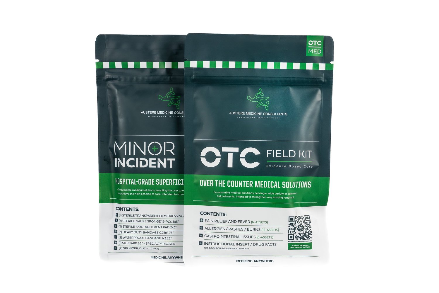 Austere Medicine Consultants’ minor incident field kit (MIFK) and Over the counter field kit (OTC)